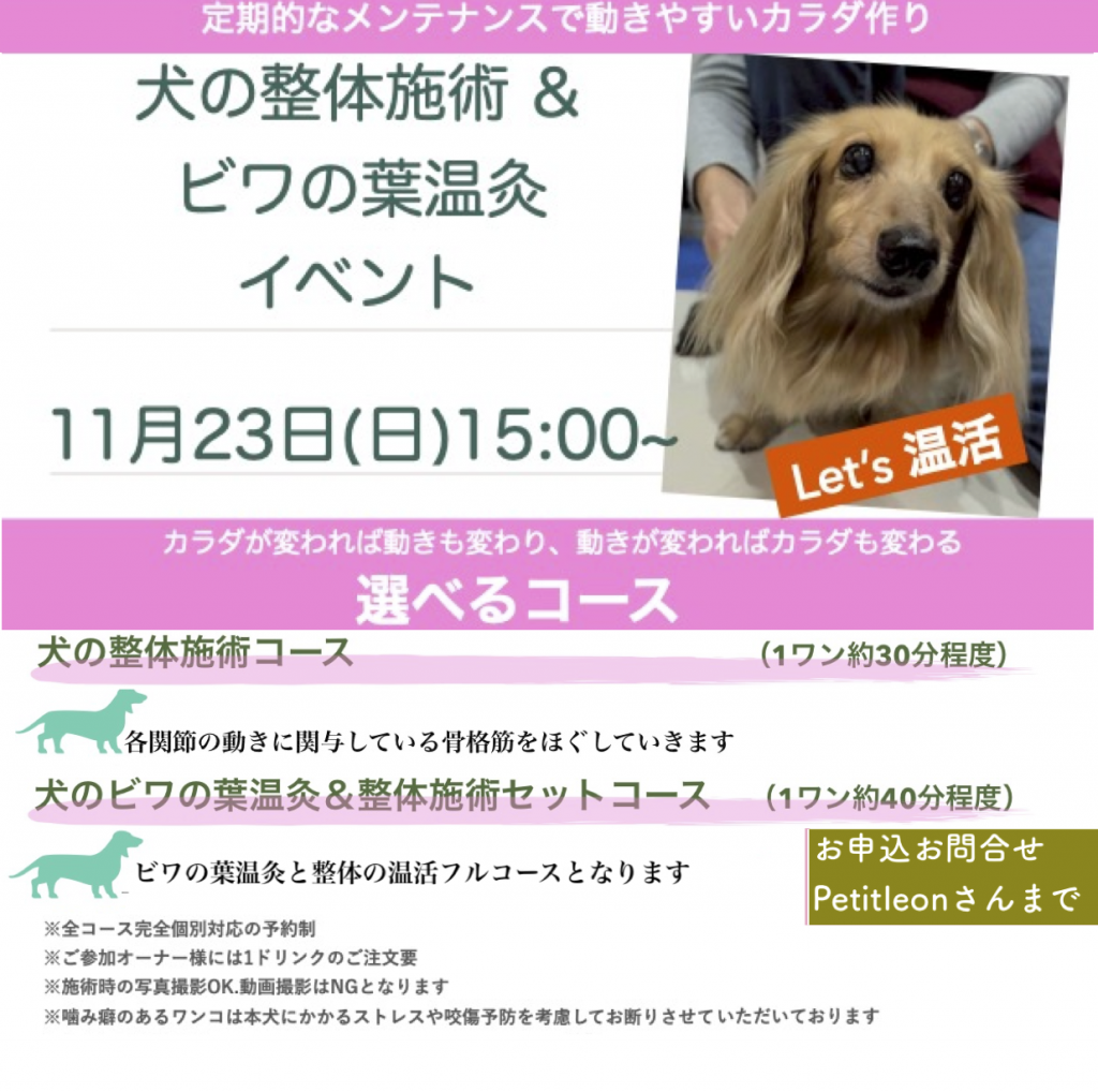 *平日ドックカフェ開催/完全予約制個別対応の施術イベント*